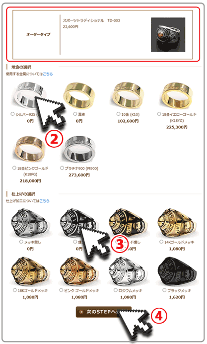 地金と仕上げ加工を選択
