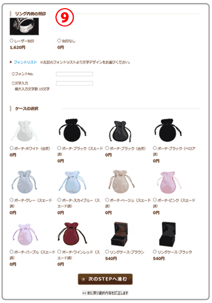 ⑨「リング内側の刻印」は、