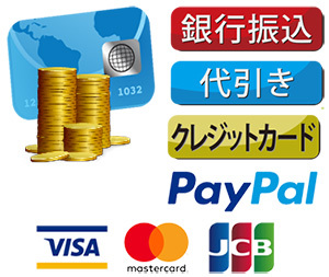 「銀行振込」「代引き」「クレジットカード支払い」「PayPal」のなかよりお選び頂けます。