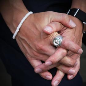 カメオ風スカルが特徴的なデザインカレッジリング。